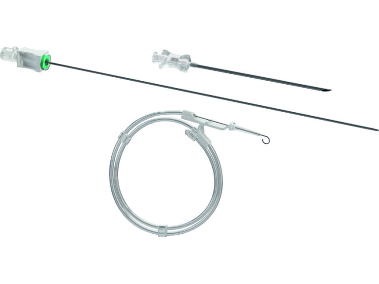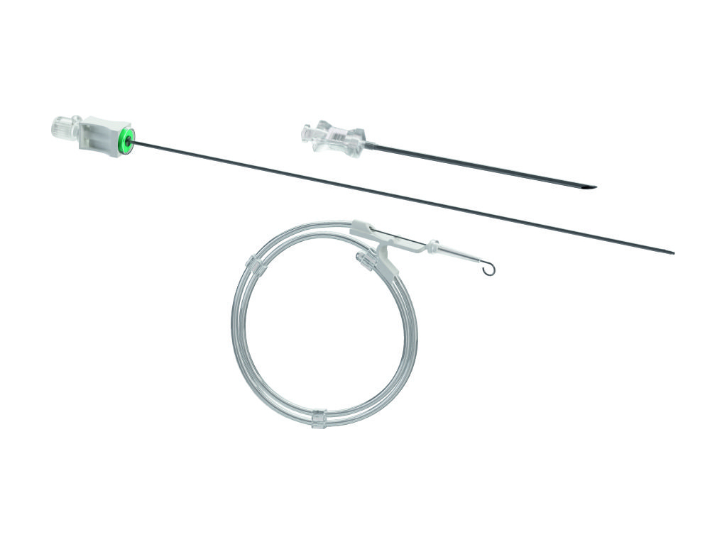 a percutaneous catheter that owns all the unmatched features of UNICO, that now can be positioned through a simplified Seldinger technique. A small entry needle has been included in the kit to make the system even safer and usable by any type of user. Moreover the polyurethane catheter is inserted using a dedicated Verres needle wich ensures support and a one-step dilation.